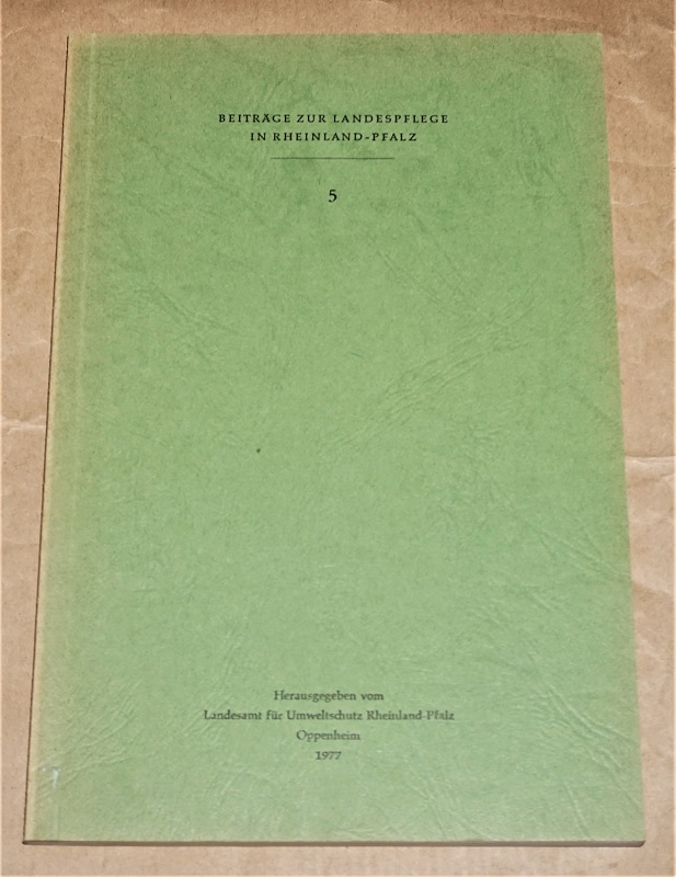 Beiträge zur Landespflege in Rheinland-Pfalz 5. Grünstadt, Sommer, 1977. 24 cm. 156 S. Ill., Kt. Kart. Umschlag am Rücken aufgehellt, sonst leichte Gebrauchsspuren. Beiträge zur Landespflege in Rheinland-Pfalz, 5.