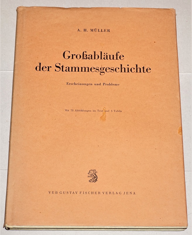 Müller, Arno Hermann: Großabläufe der Stammesgeschichte. Erscheingn u. Probleme. Jena: G. Fischer, 1961. 24,5 cm, 116 S. Mit 71 Abb. im Text u. 4 Taf. Ln., SU. SU. mit Randläsuren. Sonst leichte Gebrauchsspuren.