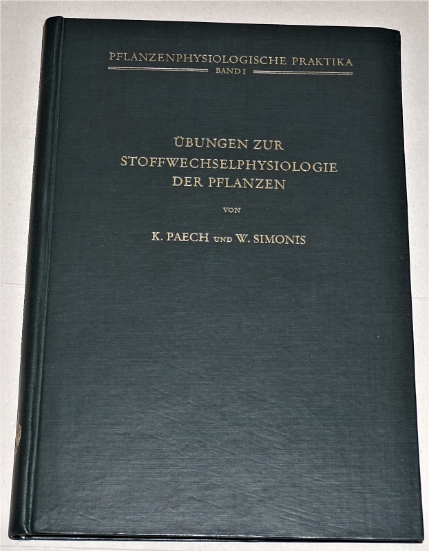 Paech, Karl: Übungen zur Stoffwechselphysiologie der Pflanzen. Paech, K[arl], Dr., Univ. Prof., u. Dr. W[ilhelm] Simonis, Hochsch. Doz. ; Mit 39 Abb. Berlin, Göttingen, Heidelberg, Springer-Verl., 1952. 23 cm, XI, 252 S. Ln. Leichte Gebrauchsspuren. Einbandecken etw. bestoßen. (Pflanzenphysiologische Praktika, Bd 1).