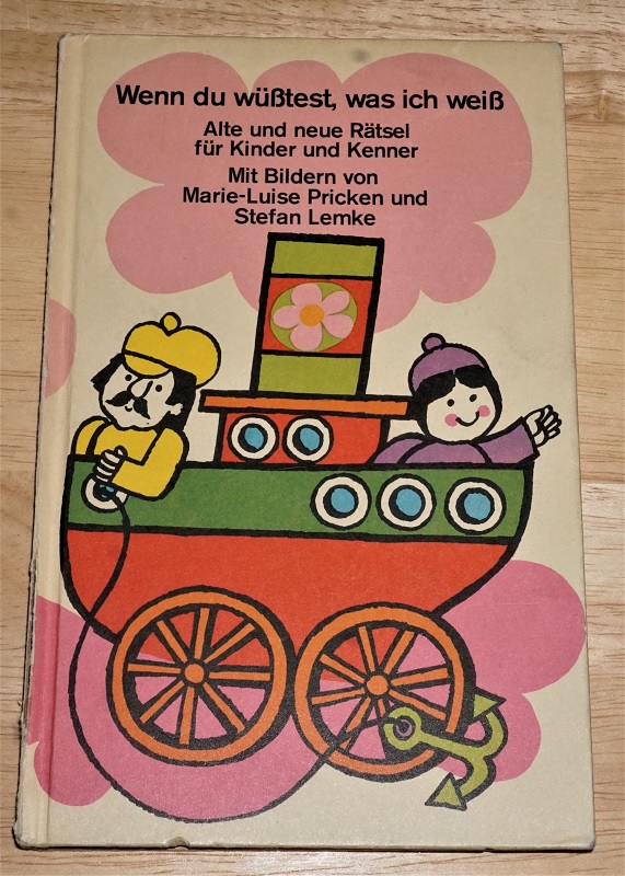 Wenn du wüsstest, was ich weiss. Alte und neue Rätsel für Kinder u. Kenner. Mit Bildern von Marie-Luise Pricken und Stefan Lemke. Gütersloh: S. Mohn, 1967. 8. 48 S. Ppd. Rücken an der Kante ein Stück aufgeplatzt, Einbandkante mit Druckstelle, Kapitale u. Einbandecken etw. bestoßen. Einband gebräunt, innen sauber u. gut erhalten. Das kleine Buch, 183.