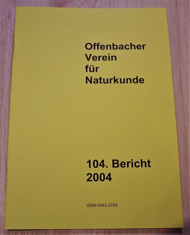 Offenbacher Verein für Naturkunde (Hrsg.): 104. Bericht des Offenbacher Vereins für Naturkunde. Offenbach: 2004 21 cm, 56 S. mit Abb. Geheftet. Leichte Gebrauchsspuren.