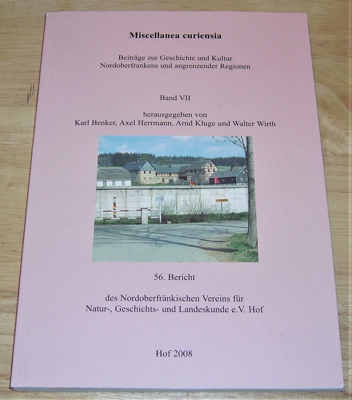 Miscellanea curiensia Bd. 7. Hof: Nordoberfränkischer Verein für Natur-, Geschichts- u. Landeskunde, (2008). 220 S. Ill., graph. Darst., Kt. Kart. Leichte Gebrauchsspuren. … Bericht des Nordoberfränkischen Vereins für Natur-, Geschichts- und Landeskunde e.V., 56.