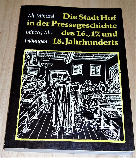 Mintzel, Alf: Die Stadt Hof in der Pressegeschichte des 16. [sechzehnten], 17. [siebzehnten] und 18. [achtzehnten] Jahrhunderts. Hof: Nordoberfränk. Verein für Natur-, Geschichts- u. Landeskunde, 1979. 21 cm. 312 S. 105 Ill., Noten. Kart. Einband etw. berieben, kl. Stempel a. Vorsatz. Sonst leichte Gebrauchsspuren. … Bericht des Nordoberfränkischen Vereins für Natur-, Geschichts- und Landeskunde e.V., 28. Aus der aufgelösten Bibliothek des Offenbacher Vereins für Naturkunde.