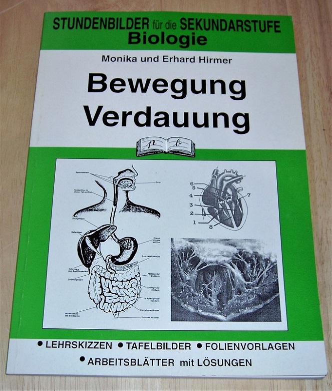 Hirmer, Monika und Erhard: Biologie. Bewegung Verdauung. Lehrskizzen Tafelbilder Folienvorlagen Arbeitsblätter mit Lösungen. Puchheim: pb-Verl., 2000. 29,5 cm, 94 S Ill. Kart. Leichte Gebrauchsspuren. Ecke etw. bestoßen. Stundenbilder für die Sekundarstufe.
