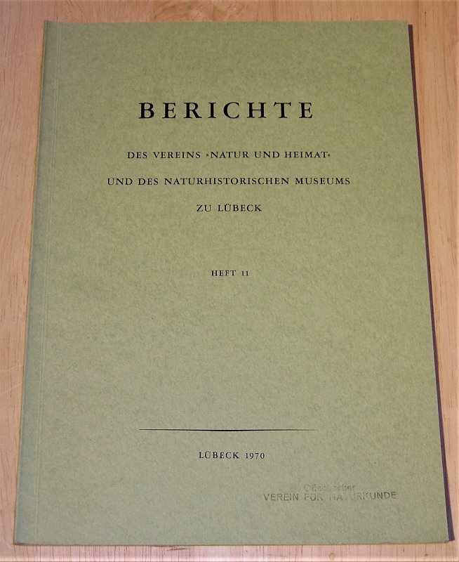 Berichte des Vereins „Natur und Heimat“ und des Naturhistorischen Museums zu Lübeck Heft 11. Lübeck: 1970 23,5 cm, 103 S. mit Abb. Kart. Umschlag etw. gebräunt, kl. Stempel / Datum a. Umschlag u. Titel. Leichte Gebrauchsspuren. Aus der aufgelösten Bibliothek des Offenbacher Vereins für Naturkunde.