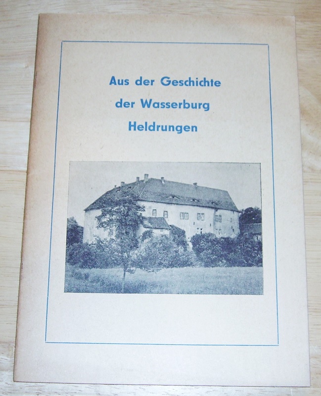 Ziller, Ernst: Aus der Geschichte der Wasserburg Heldrungen. Herausgegeben von der Heldrunger Museumskommission in Verbindung mit dem Klub der Werktätigen aus Anlaß der 10. Thomas-Münzer-Festtage im Mai 1964. Heldrungen: 1964 20,5 cm, 35 S. mit Abb. Geheftet. Leichte Gebrauchsspuren. Papier gebräunt.