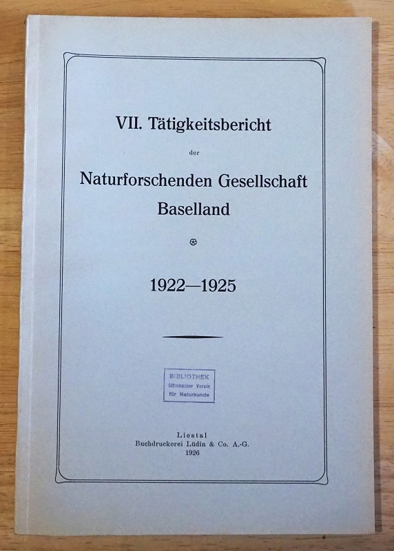 ![]() Tätigkeitsberichte der Naturforschenden Gesellschaft Baselland Band VII. Berichtsjahre 1922-1925. |