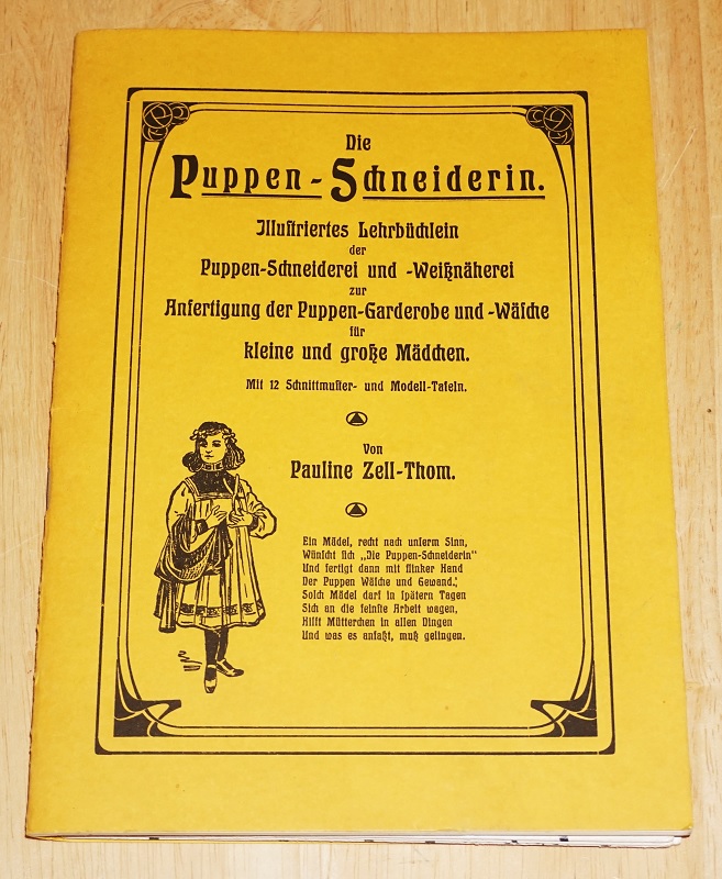 Zell-Thom, Pauline: Die Puppen-Schneiderin. ill. Lehrbüchlein d. Puppen-Schneiderei u. -Weissnäherei zur Anfertigung d. Puppen-Garderobe u. -Wäsche für kleine u. grosse Mädchen. Nachdr. d. 1. Ausg. Leipzig, Reisner, 1904. Düsseldorf: Schroeder, 1984. 24 cm Schnittmuster- u. Modelltaf. ([6] Bl.). 32 S. Geheftet. Leichte Gebrauchsspuren.