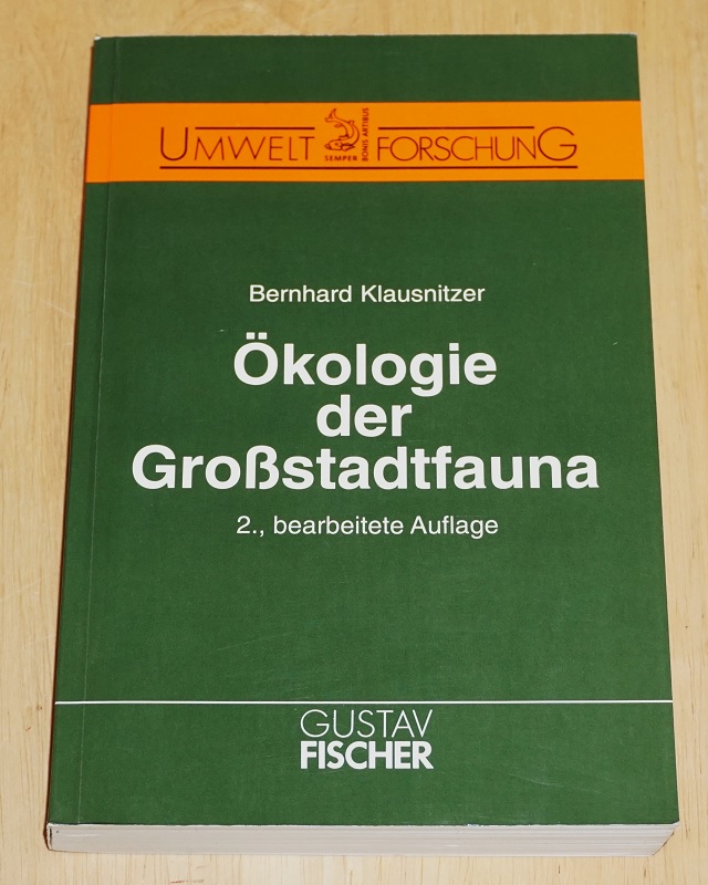 Klausnitzer, Bernhard: Ökologie der Grossstadtfauna. 2., bearb. und erw. Aufl. Jena/Stuttgart: G. Fischer, 1993. 22 cm. 454 S. Ill., graph. Darst., Kt. Kart. Leichte Gebrauchsspuren. Umweltforschung.