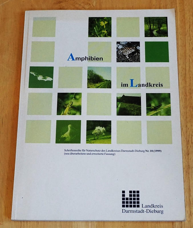 Skriba, Dieter: Amphibien im Landkreis Darmstadt-Dieburg. Teil 1. Neu überarbeitete u. erweiterte Fassung. Dieburg: Landkreis Darmstadt-Dieburg, Untere Naturschutzbehörde, 1999. 29 cm, 54 S. mit Abb. Kart. Umschlag etw. gebräunt / angeschmutzt, Ecke mit Knickspur. Gut erhalten. Natur und Umwelt im Landkreis Darmstadt-Dieburg, 10.