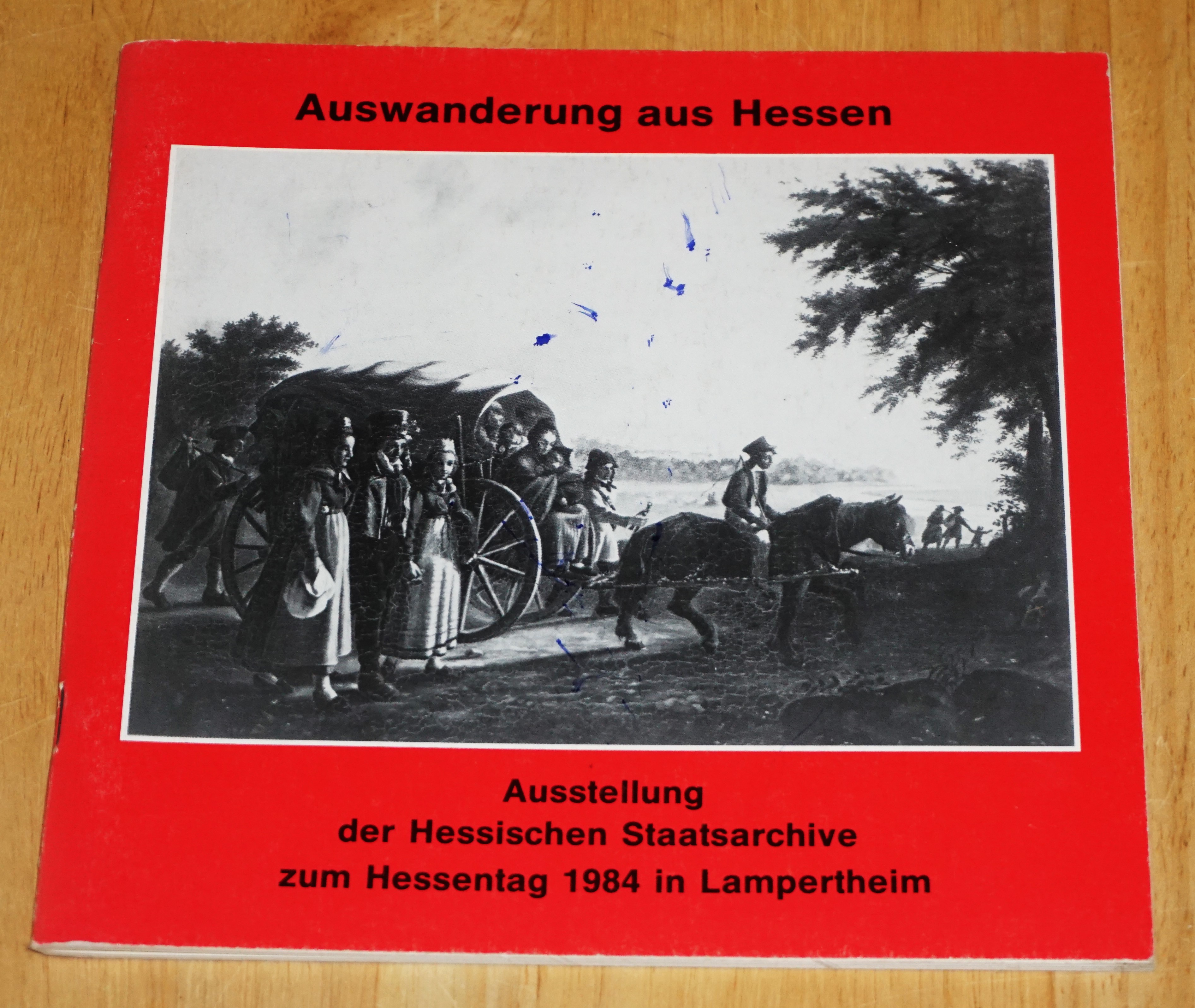 Auerbach, Inge: Auswanderung aus Hessen. Ausstellung d. hess. Staatsarchive zum Hessentag 1984 in Lampertheim. Marburg: Hess. Staatsarchiv, 1984. 20 cm. 52 S. Geheftet. Umschlag vorne fleckig, sonst gut erhalten.