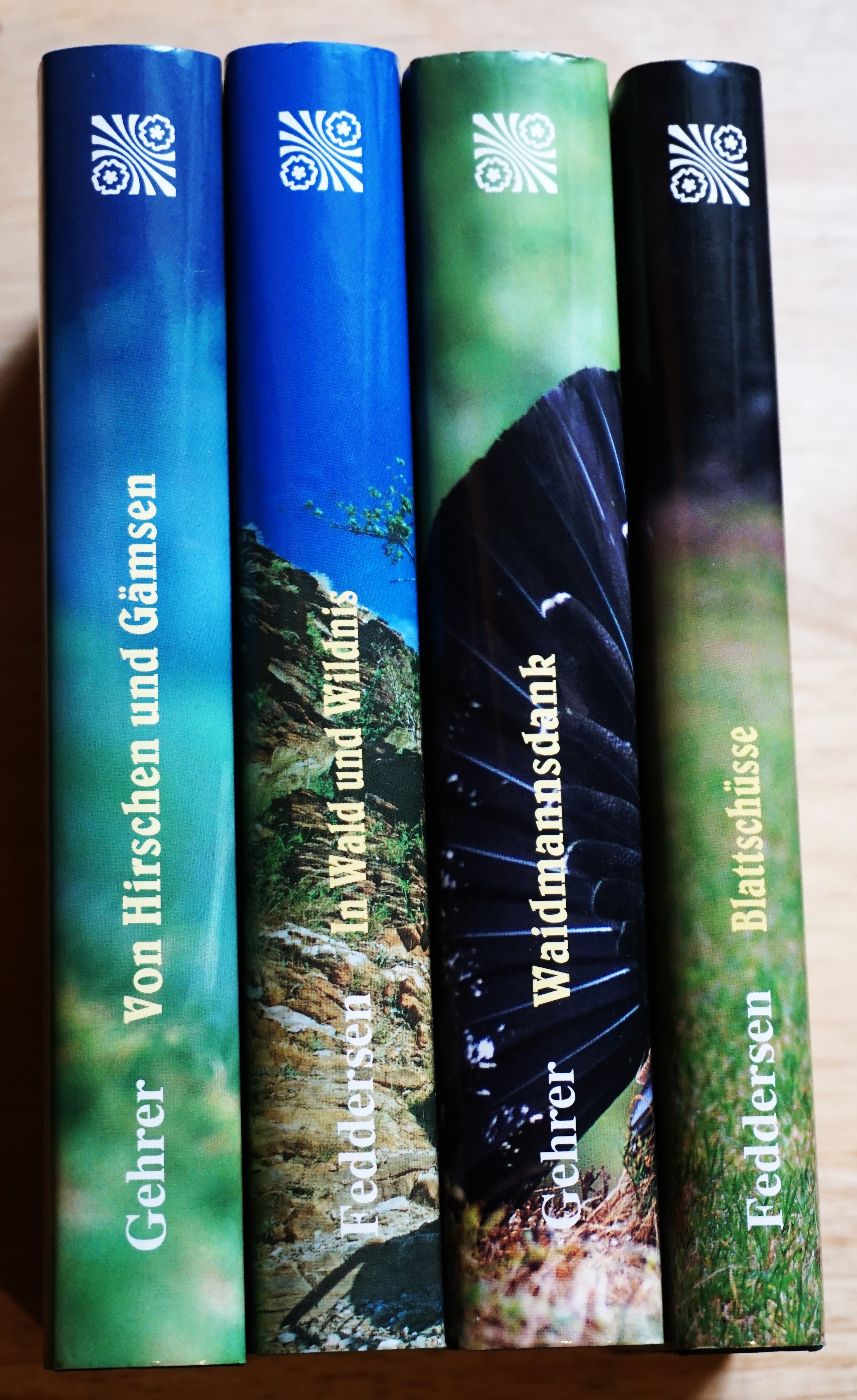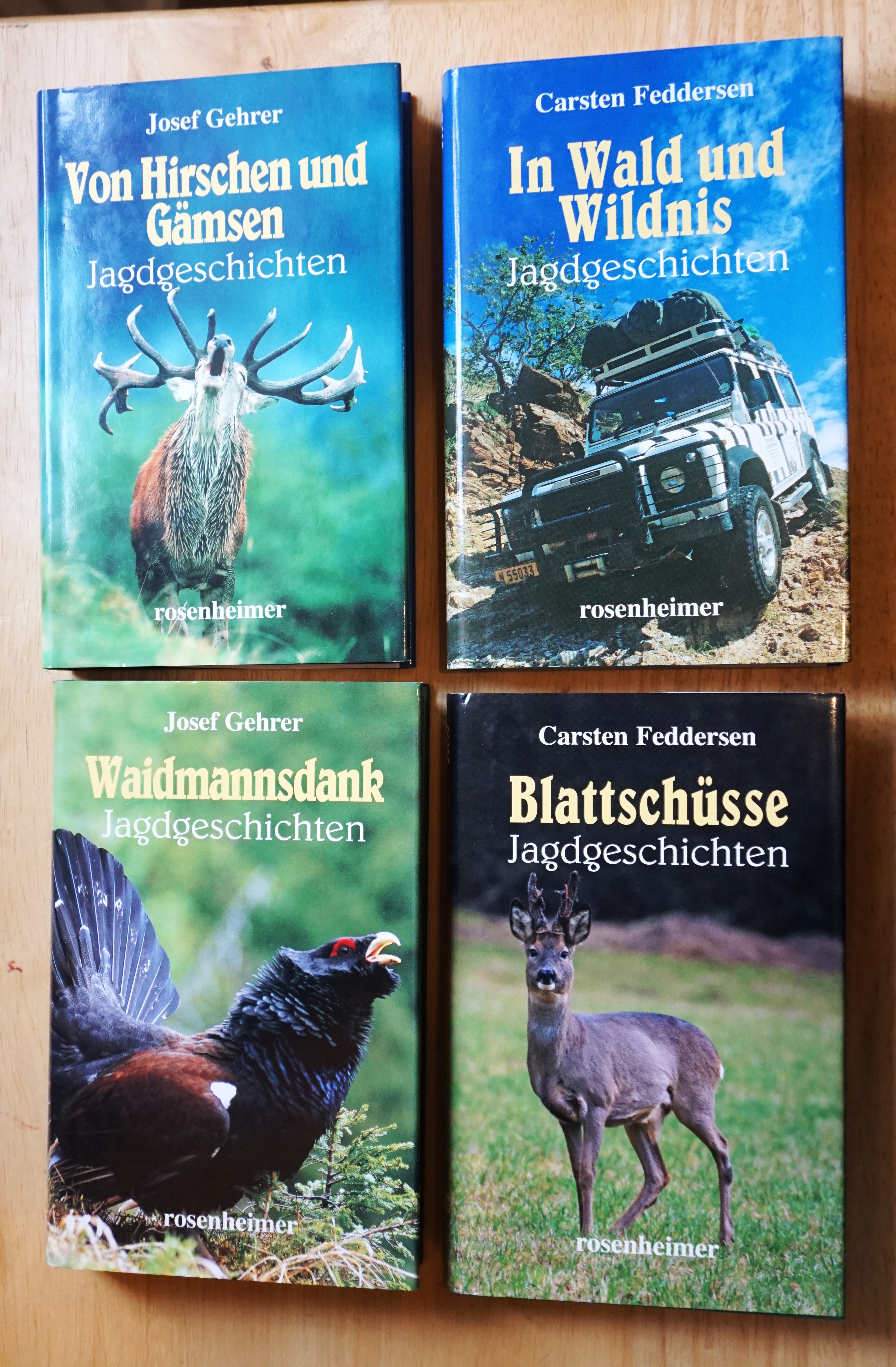 Feddersen, Carsten / Gehrer, Josef: Blattschüsse / In Wald und Wildnis / Von Hirschen und Gämsen / Waidmannsdank. Konvolut von 4 Bänden Jagdgeschichten. Sonderausgabe für Reader´s Digest. 4 Bände. Stuttgart u.a.: Das Beste 2008 19 cm, 191 / 254 / 254 / 304 S. Ppd. , SU. Leichte Gebrauchsspuren.