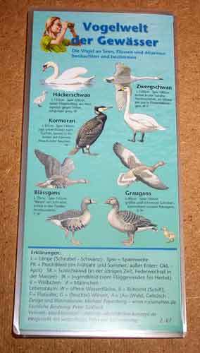 Vogelwelt der Gewässer. Die Vögel an Seen, Flüssen und Altarmen beobachten und bestimmen. Laminierte Tafel im Din A4-Format, zwei mal gefaltet. Neuware.