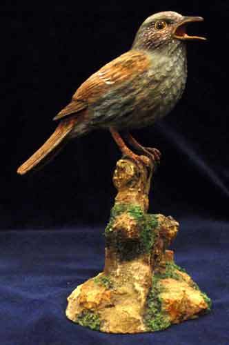 Artfauna: Heckenbraunelle. Höhe 16 cm. Modell in Lebensgröße aus Kunstharz, handbemalt. Neuware.