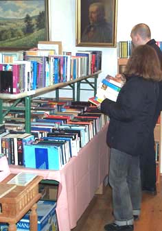 Da freut sich ein Kunde über schöne Bücher und der Verkäufer über den Erlös für den guten Zweck! |